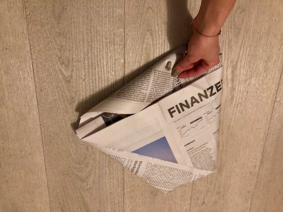 Und so macht ihr ein Müllsackerl aus Zeitungspapier