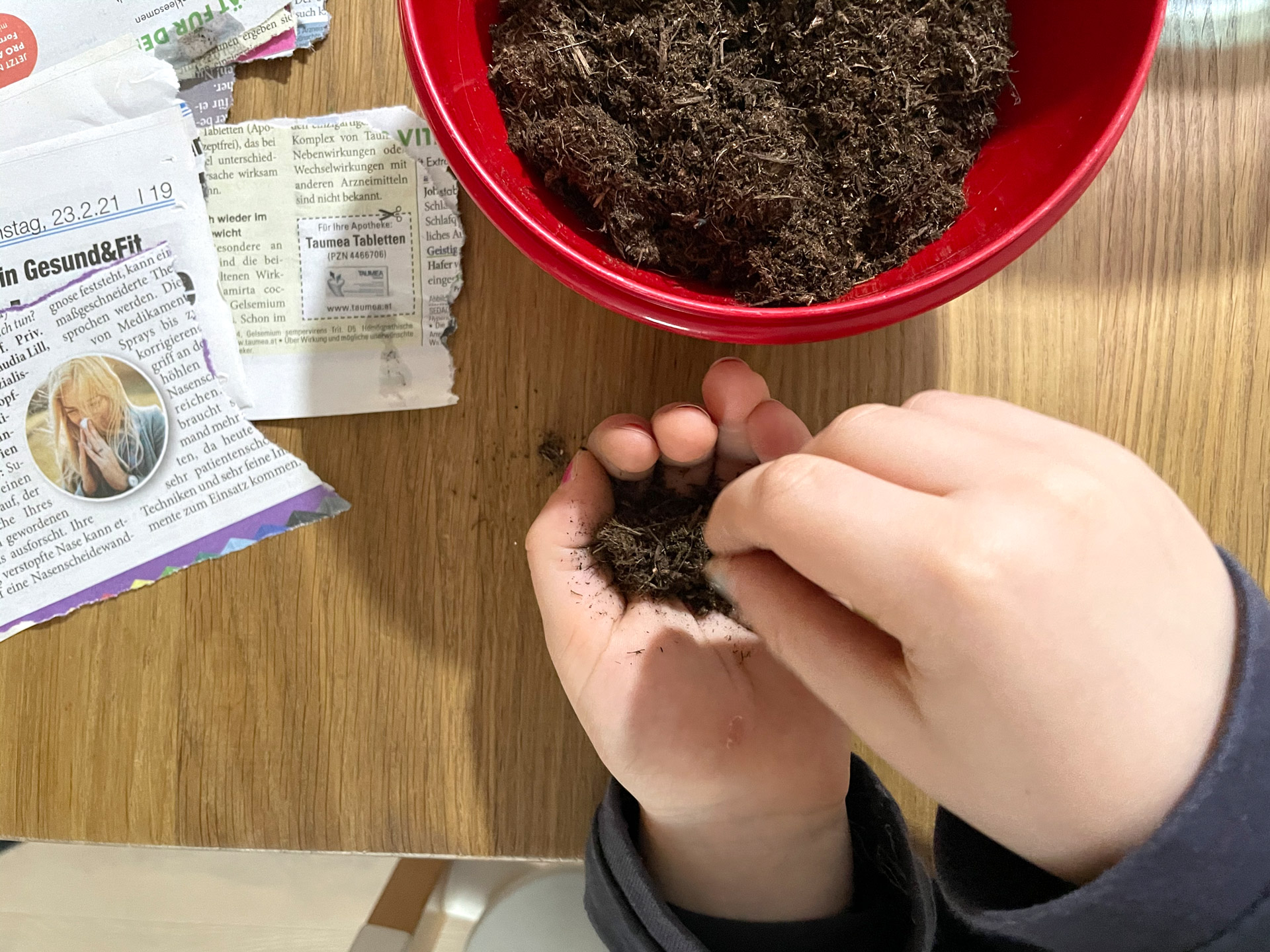 Mischt in einer kleineren Schüssel die Erde mit den Samen.
