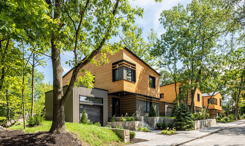 Ihr neues Zuhause ist eines von drei nebeneinanderliegenden „Passivhäusern“, das heißt, sie erfüllen die Standards des Passivhaus-Instituts in Deutschland. Sie wurden von RODE Architects aus Boston entworfen und vom Entwickler Dmitry Baskin von Passive House Construction gebaut. Sie verwenden eine luftdichte Konstruktion, dreifach verglaste Fenster, ein Fundament aus 12-Zoll-Betonplatten auf 8-Zoll-Schaumblöcken und eine strategische Verschattung zur Umgehung konventioneller Heiz- und Kühlsysteme. RODE hat die Häuser so entworfen, dass sie in die Größe und Proportionen der traditionellen Ranchhäuser des Viertels passen, mit einfach geneigten Dachlinien und Seitengaragen. Jedes der Häuser verfügt über vier Schlafzimmer, drei Badezimmer sowie einen offenen Küchen- und Wohnbereich.