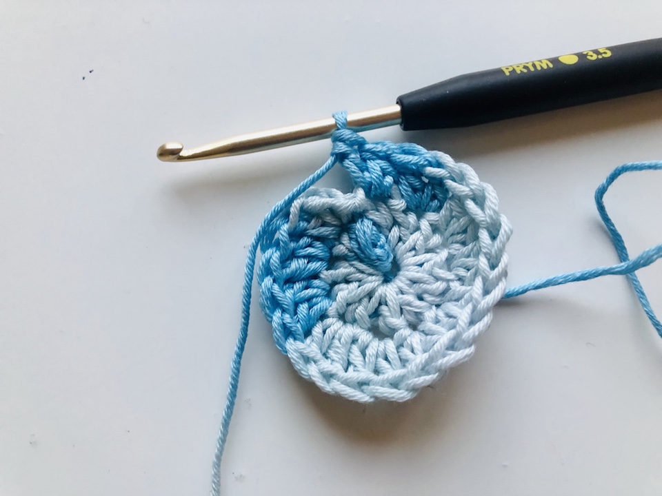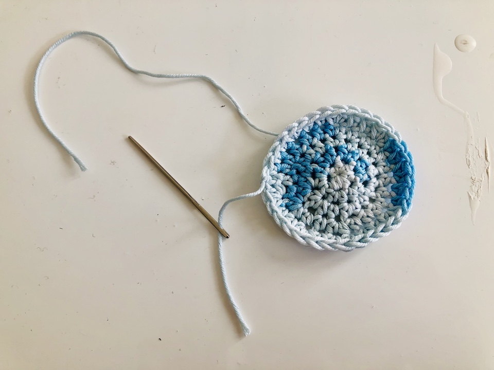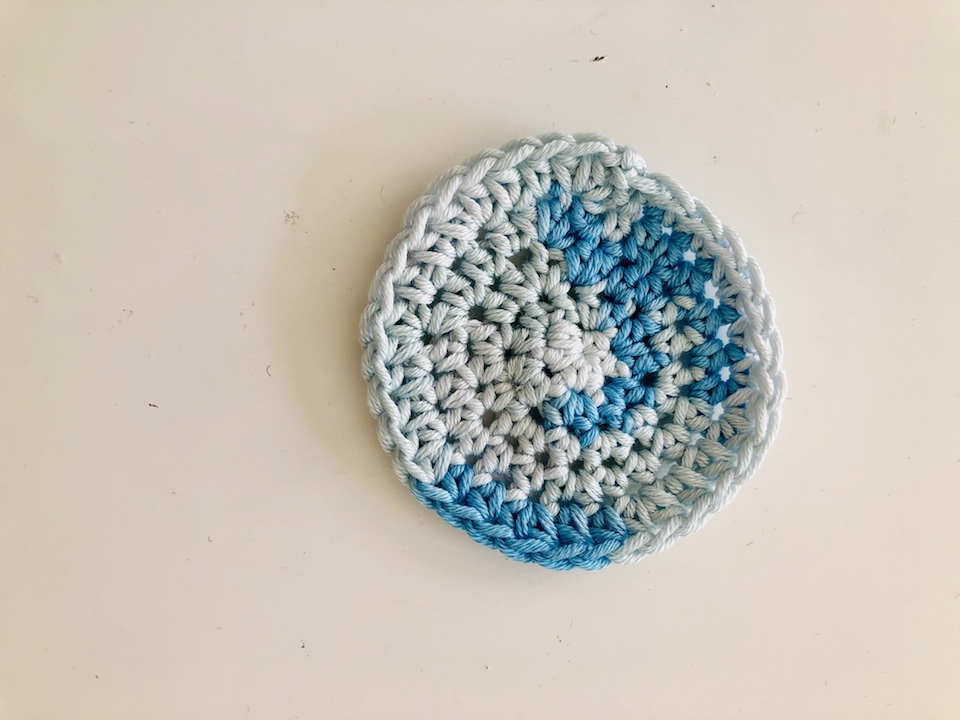 • Schritt 5: Wenn du möchtest, kannst du nach dem gleichen Prinzip wie in Schritt 4 noch weitere Reihen hinzufügen. Das hängt ganz davon ab, wie groß dein selbst gehäkeltes Kosmetikpad werden soll.