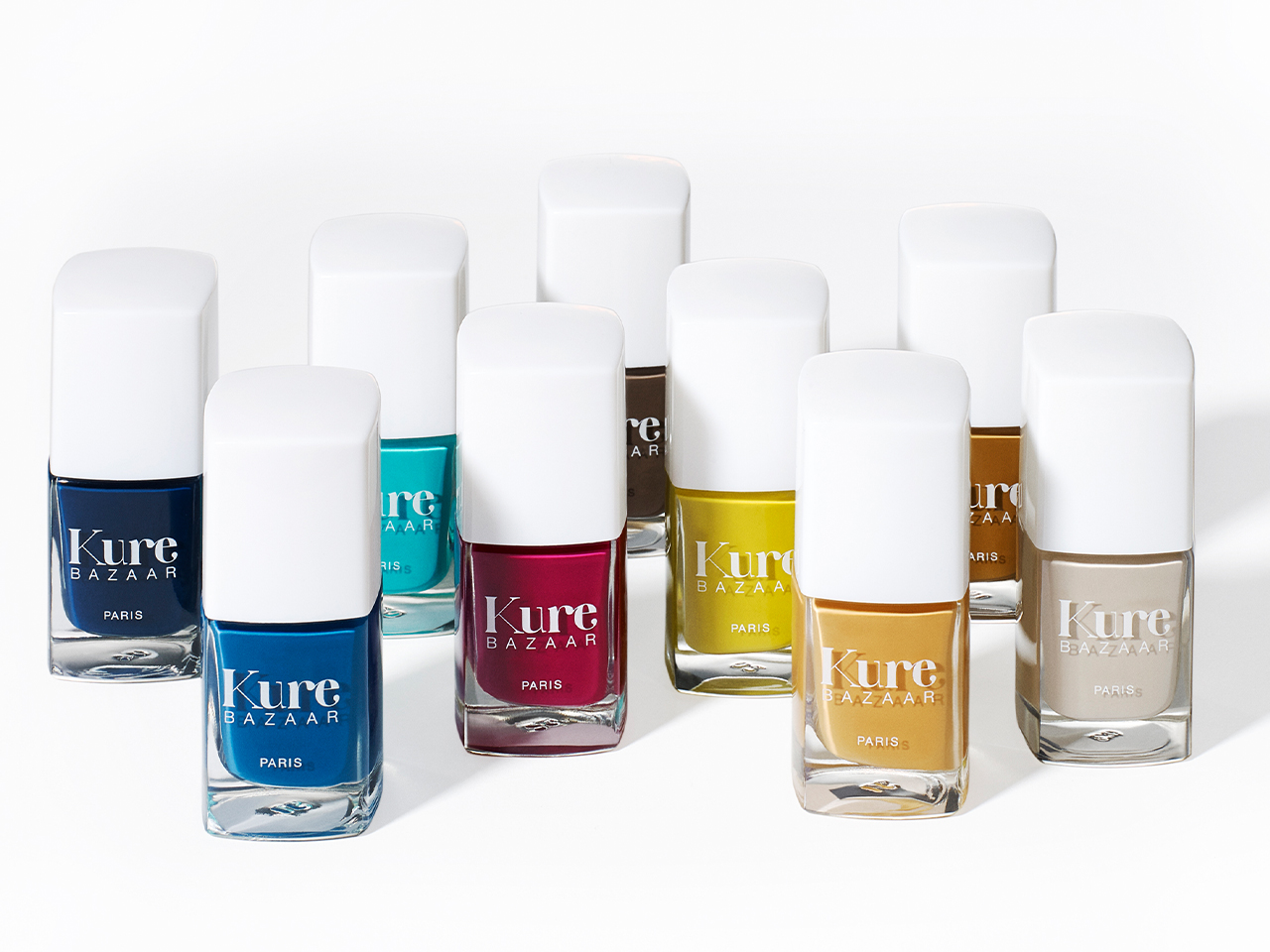 Die Nagellacke von Kure Bazaar gibt es in über 20 verschiedenen Farben. Darüber hinaus haben sie den Anspruch, herkömmlichen Nagellacken in Farbtrends nicht im Geringsten nachzustehen. Die Nagellacke bestehen aus bis zu 85% Inhaltsstoffen aus natürlichem Ursprung.