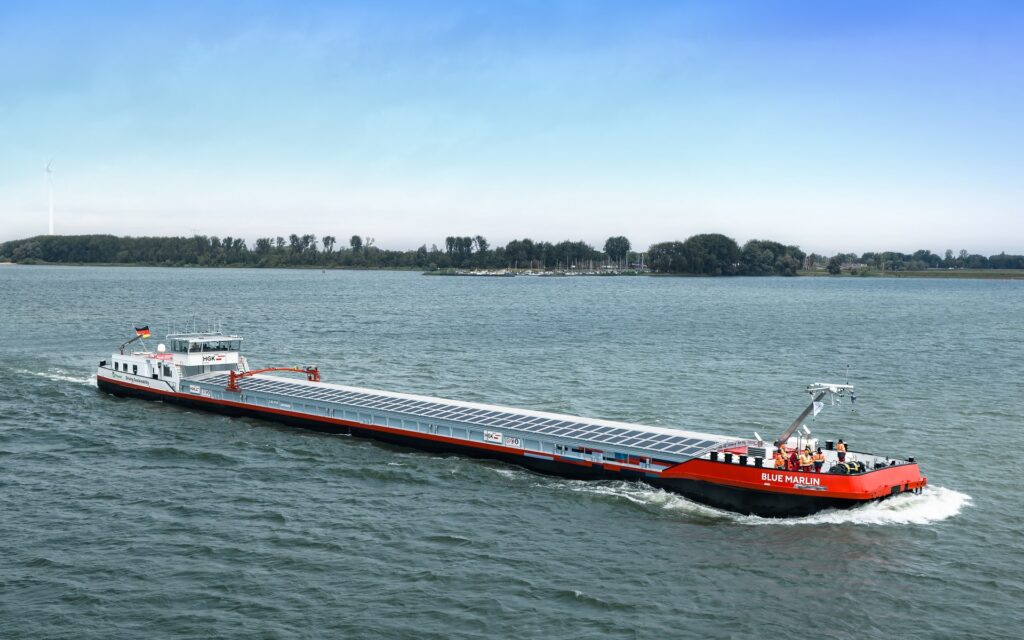 Durch die Kombination aus Photovoltaik und dieselelektrischem Hybridantrieb lassen sich jährlich bis zu 36 Tonnen CO₂ einsparen. Das macht die „Blue Marlin“ zu einem Vorzeigeprojekt für klimafreundliche Logistik auf Binnengewässern.