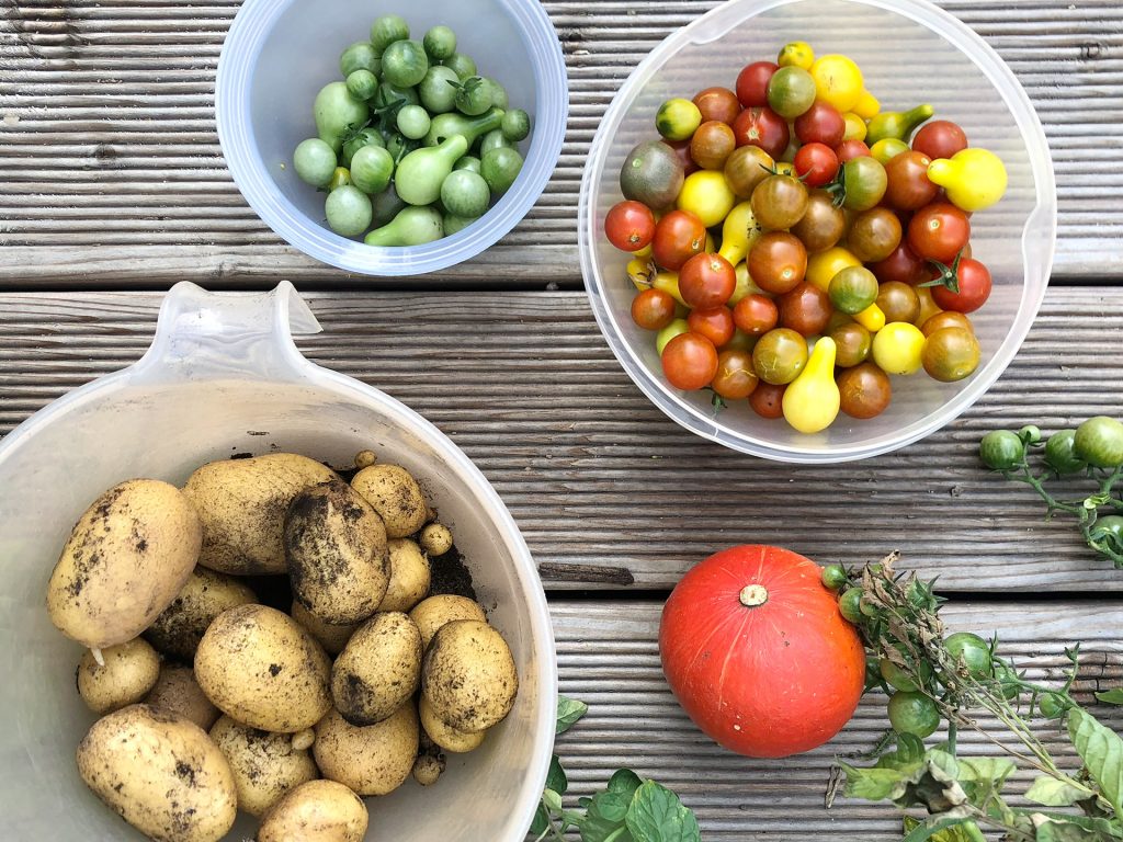 Der Herbst ist für mich die Haupterntesaison in Sachen Gemüse! Die letzten Paradeiser werden vom Strauch geholt und die grünen zum Nachreifen aufgehängt. Paprika, Gurken, Zucchini, Mais, Mangold, Brokkoli und Bohnen – das alles hat im Herbst Saison und kann jetzt geerntet werden. Wir haben auch schon Kartoffeln aus der Erde gegraben (aus 2 Kartoffeln, die wir im Frühjahr gepflanzt haben, sind immerhin knapp 1kg neue gewachsen!) und damit leckere Pommes gemacht. Neben Kartoffeln könnt ihr jetzt auch Karotten und Radieschen aus dem Boden ziehen, Zwiebel ausgraben und die Kürbisse abnehmen.