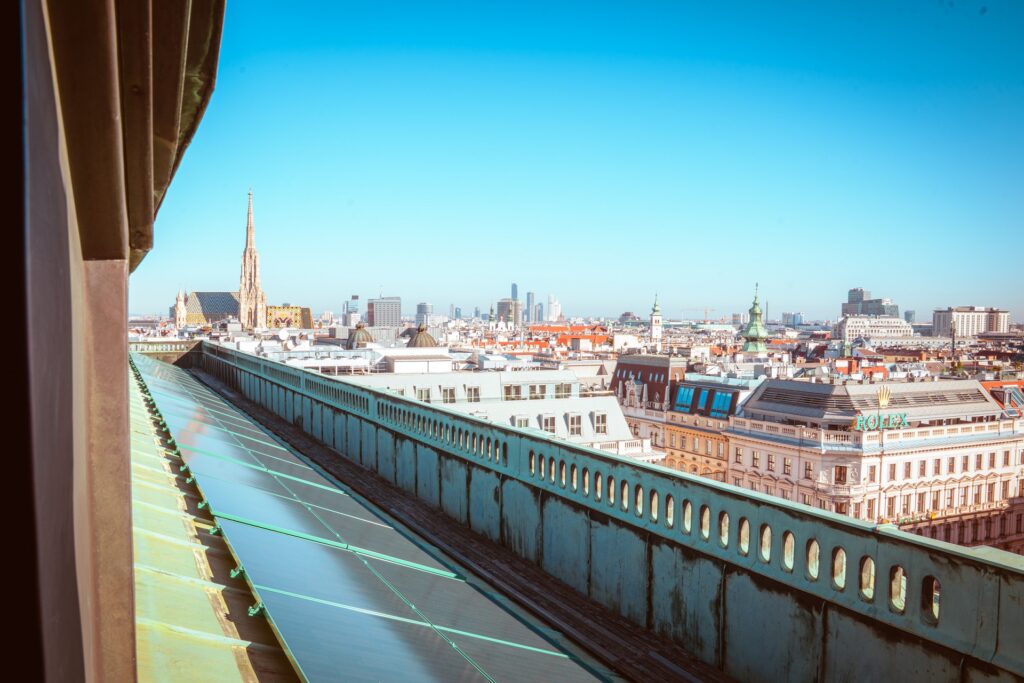 Die nagelneue Photovoltaikanlage auf dem Dach der Wiener Staatsoper versorgt ab sofort die gesamte Haustechnik, Lüftung und Gangbeleuchtung der Oper mit selbst produziertem, sauberem Sonnenstrom. Eines der ersten großen Opernhäuser der Welt, die Wiener Staatsoper, wird zum Selbstversorger.