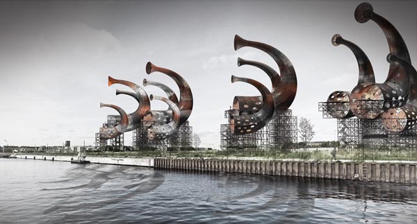 In der Geschichte Dänemarks spielte Wind immer eine große Rolle, früher trieb er die Schiffe der Wikinger an, heute deckt Dänemark 28 % seines Energiebedarfs aus Windenergie. In den Hörnern, die aus Teilen von alten Schiffen konstruiert werden sollen, wird die Kraft des Windes in Energie umgewandelt, sie sollen aber auch den Klang des Windes hörbar machen. Der Wind tritt oben in die Hörner ein, treibt dort eine Turbine an und strömt in den weiten Teil der Hörner hinunter, wo er durch verschieden große Löcher wieder austritt und so Klänge erzeugt. Abgesehen von der Musik- und Klangproduktion, haben die Wikinger-Hörner die Kapazität 117MWh Strom pro Jahr zu erzeugen. Sound of Denmark kam zwar auf die Shortlist, gehört aber leider nicht zu den Gewinnern des Preises.