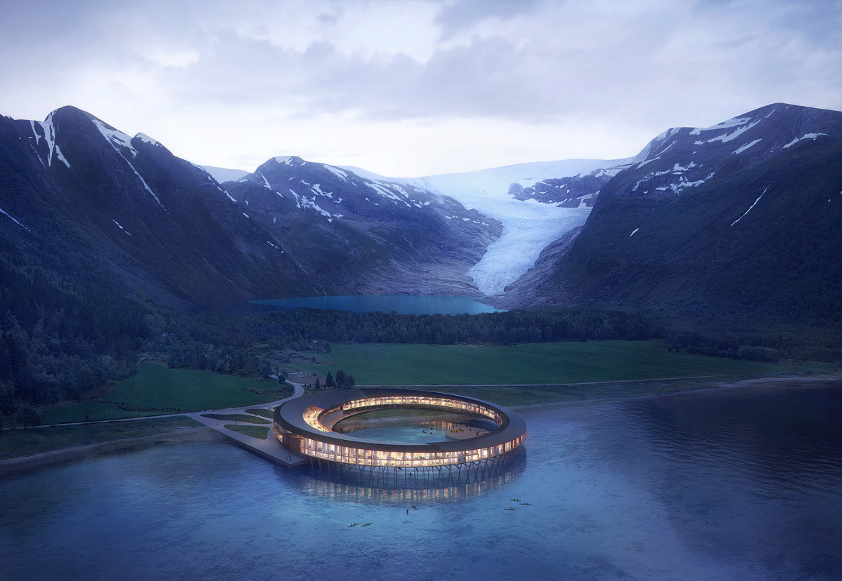 Die runde Form des Gebäudes ermöglicht den Besuchern das gesamte Panorama zu genießen und soll sich von der Küste ins Wasser des Holandsfjords erstrecken. In Anlehnung an die traditionellen A-förmigen „fiskehjell“, hölzerne Strukturen die zum Trocknen des Fisches dienen, und den typischen saisonal genutzten Fischerhäusern „rorbu“, wird das Hotel auf hölzernen Pfählen stehen. So ist der Eingriff in die Unterwasserwelt möglichst gering und es wird eine optische Leichtigkeit und Transparenz erzielt. In der Pfahlstruktur soll es außerdem eine Art Galeriegang geben, auf dem die Besucher spazieren können. Im Winter soll diese Fläche zur Aufbewahrung von Ruderbooten und ähnlichem dienen, somit sind keine weiteren Baustrukturen und Eingriffe in die Natur für diesen Zweck nötig.