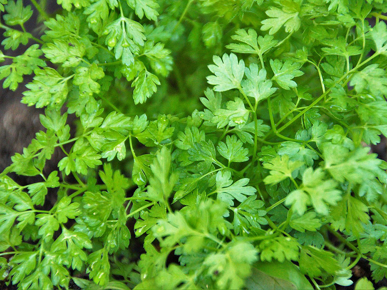 Kerbel. Diesen kannst du sogar im Herbst schon ins Freie setzen. Wenn du nur das Grün schneidest, ohne das Pflanzenherz zu verletzen, hast du den ganzen Winter über frische Kräuter.
