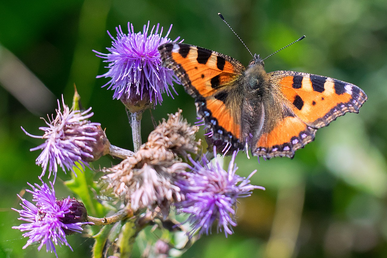 • Aus Unkraut Beikraut werden lassen: Manchmal ist es besser, lieber weniger als zu viel zu tun. Das gilt vor allem in Hinblick auf die Pflanzen, die potenziell als Unkraut gesehen werden. Du kannst darauf verzichten, es ständig auszuzupfen, sondern es stattdessen als wertvolles Beikraut sehen. Schmetterlinge lieben beispielsweise Brennnesseln, aus denen du darüber hinaus auch noch köstlichen Tee machen kannst. Und Bienen lassen sich besonders gern von Löwenzahn oder Disteln anlocken. Du kannst also einen Teil deines Gartens bewusst mit Beikräutern „verwildern“ lassen, um ihn zu einer Wildtieroase zu machen.