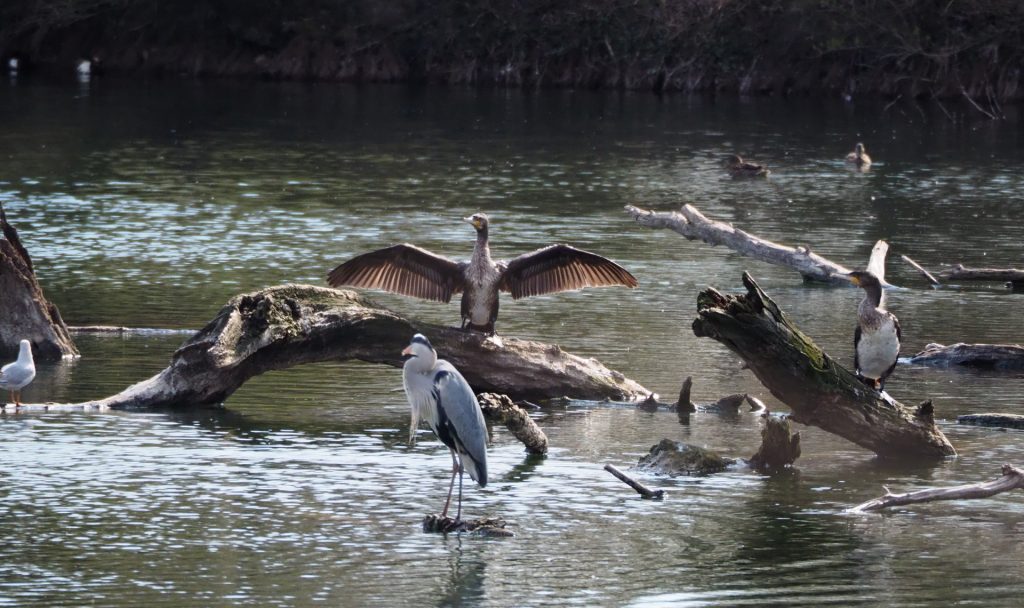 Kormorane (Phalacrocorax carbo) sind ausgezeichnete Taucher. Diese Künste stellen sie bei der Fischjagd auch gerne zur Schau. Nach getaner Arbeit, muss das Gefieder dann getrocknet werden. Dazu “öffnet er seine Arme”, bis er wieder trocken ist – so wie auch im Titelbild dieses Artikels zu sehen. Kormorane werden nicht ganz so groß wie Graureiher, manche Exemplare erreichen aber trotzdem bis zu 160cm Spannweite.